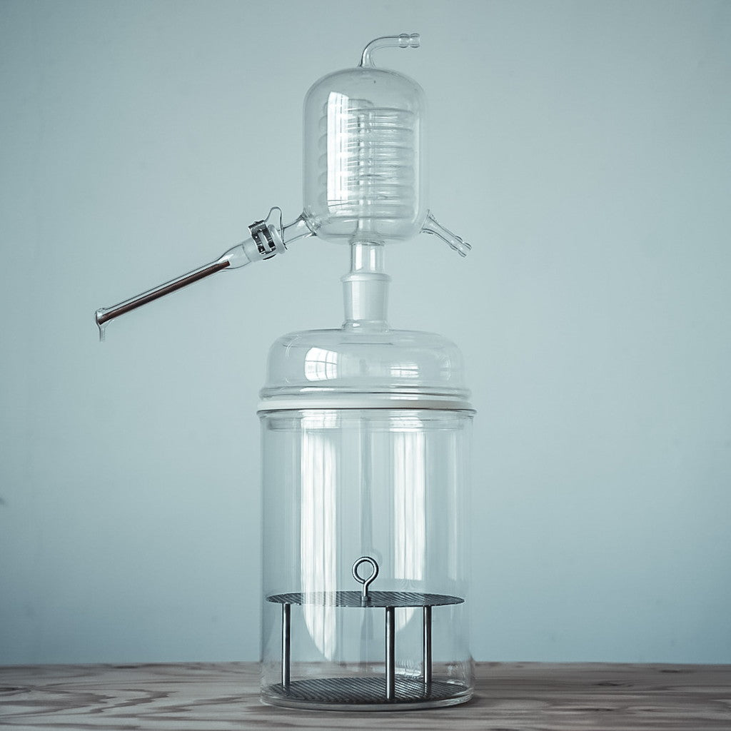 This home distiller is handmade by a physico-chemical glassmaker and conceived with a physico-chemical cooling system.